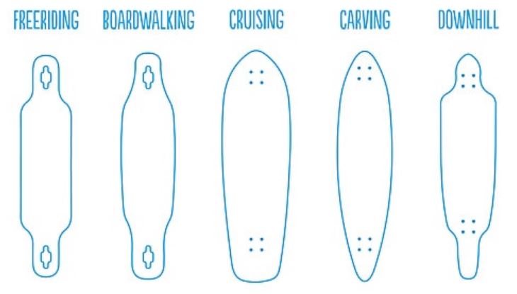 Ci-dessus, vous trouverez les principales shapes de longboard, cela vous aidera à déterminer quel shape de planche correspond à votre programme.