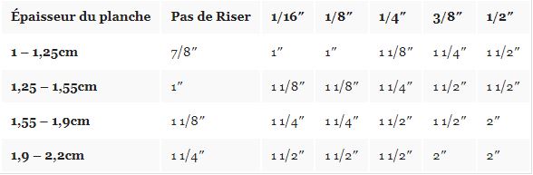 - La Riser pads : Si vous avez choisi des roues trop grandes, il faut impérativement équiper des riser pads sur votre Longboard. Dans la grande majorité des cas, les riser pads utilisés pour les Longboard / Cruiser sont inclinés. Cela empêche les Wheelbites, mais vous devrez utiliser de la visserie adaptée.